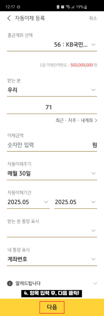 4. 자동이체 정보 입력