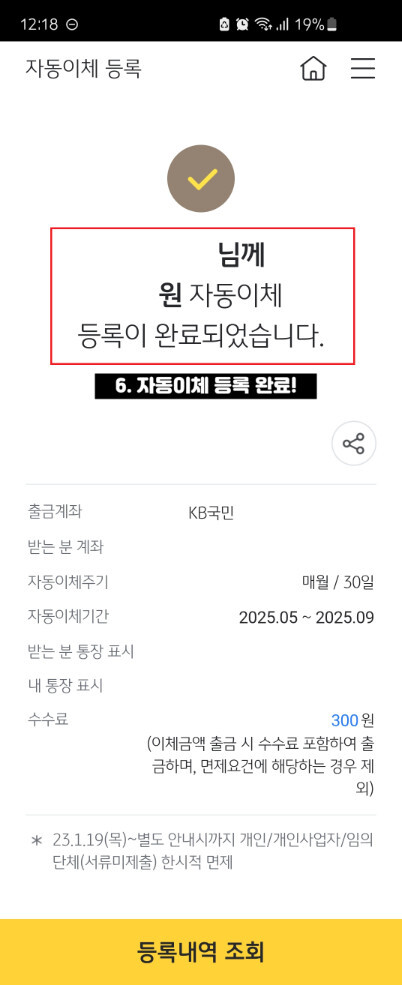 6. 자동이체 등록 완료