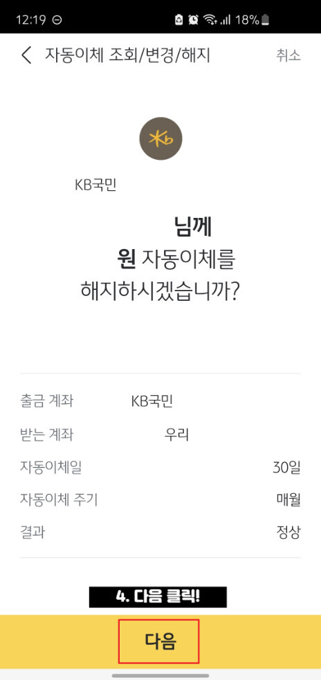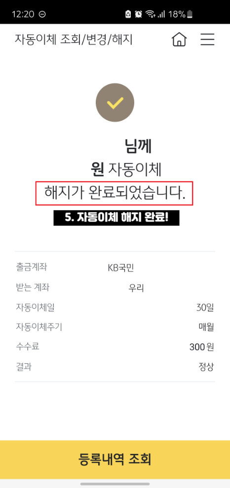 4. 자동이체 해지 완료