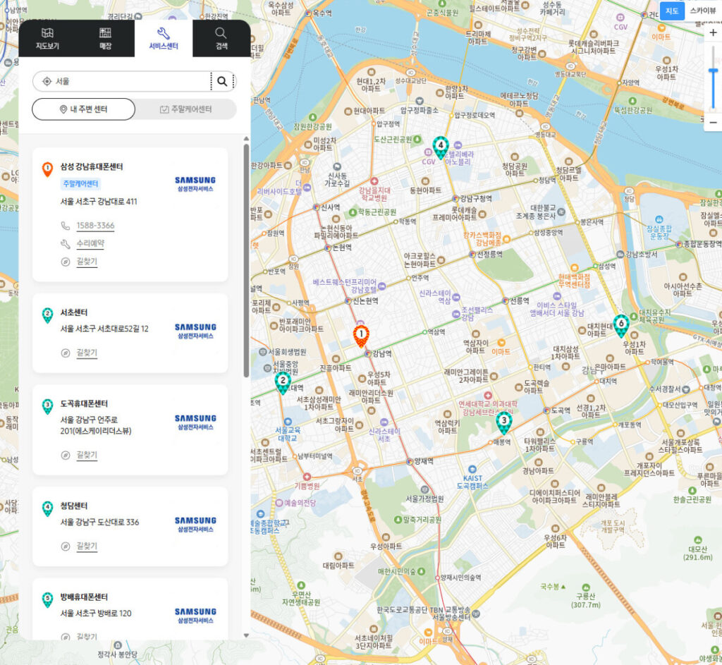 삼성전자 서비스 센터 조회는 지도 검색 기능을 활용하면 더욱 편리합니다.