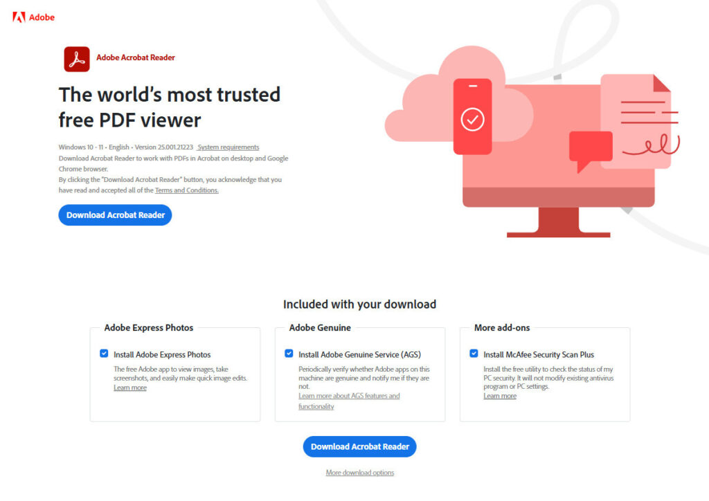 - 검색창에 ‘Acrobat Reader’를 입력해 공식 페이지 접속