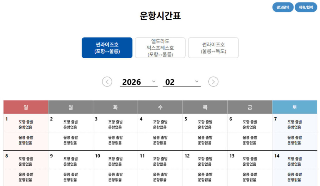 포항 울릉도 배편 예약 사이트