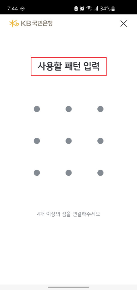 마지막 단계에서는 KB국민인증서 사용 시 필요한 간편 비밀번호와 보안 패턴을 설정합니다. 이 설정이 완료되면 인증서 발급이 마무리되며, 이후 금융 거래나 공공기관 인증 과정에서 바로 사용할 수 있습니다.